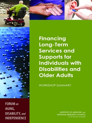 Financing Long-Term Services and Supports for Individuals with Disabilities and Older Adults is the summary of a workshop convened in June 2013 by the Forum on Aging, Disability, and Independence of the Institute of Medicine and the National Research Council to examine the financing of long-term services and supports for working-age individuals with disabilities and among individuals who are developing disabilities as they age. The workshop covered both older adults who acquire disabilities and younger adults with disabilities who may acquire additional impairments as they age, the target population of the Forum's work. The challenges associated with financing long-term services and supports for people with disabilities impacts all age groups. While there are important differences between the characteristics of programs developed for different age groups, and specific populations may have different needs, this workshop addressed the financing sources for long-term services and supports in general, noting specific differences as appropriate.